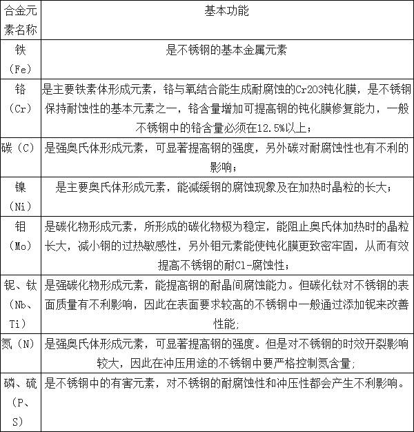 不銹鋼中的合金元素