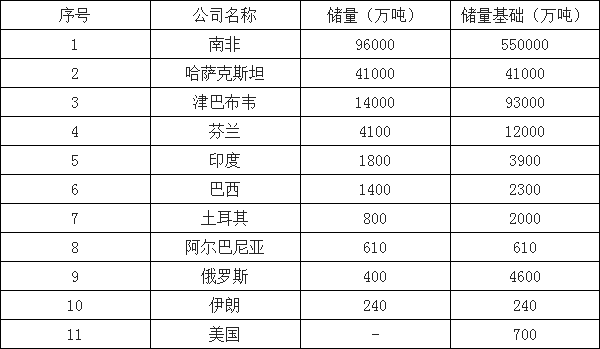 世界鉻鐵礦儲量和儲量基礎(chǔ)(商品級礦石)