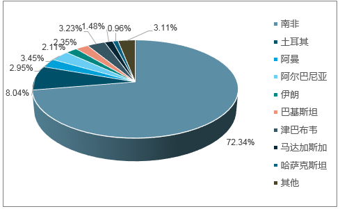 2017年我國鉻礦進口數(shù)量國別占比