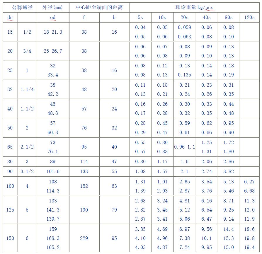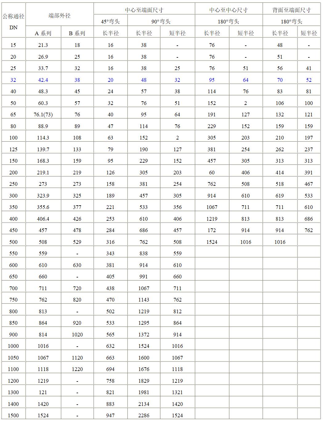 不銹鋼彎頭標(biāo)準(zhǔn)尺寸表